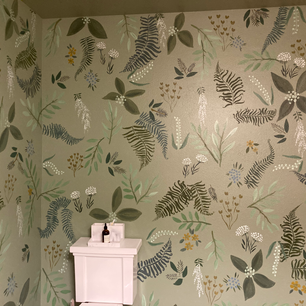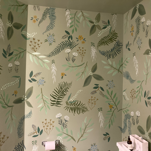 Ritual Salon in Fremont asked me to paint this mural for their washroom, to create a spa feel for their clients. They asked me to design something that looked elevated, calming, and included flora and fauna from the Pacific Northwest. I painted berries, ferns and other sage colored plants and they loved the outcome.